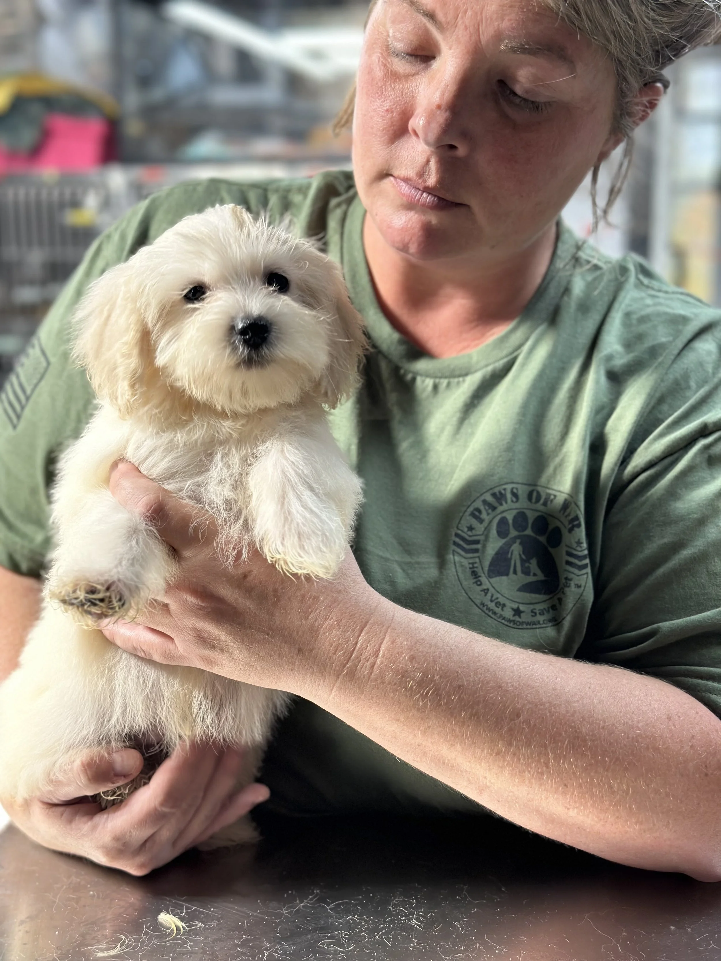 Biscuit is part of a litter of puppies who were saved from overseas through our War-Torn Pups and Cats rescue program. She was born on 1/8/25, and is now thriving in our care. She is the sweetest girl and will make a wonderful addition to your family!