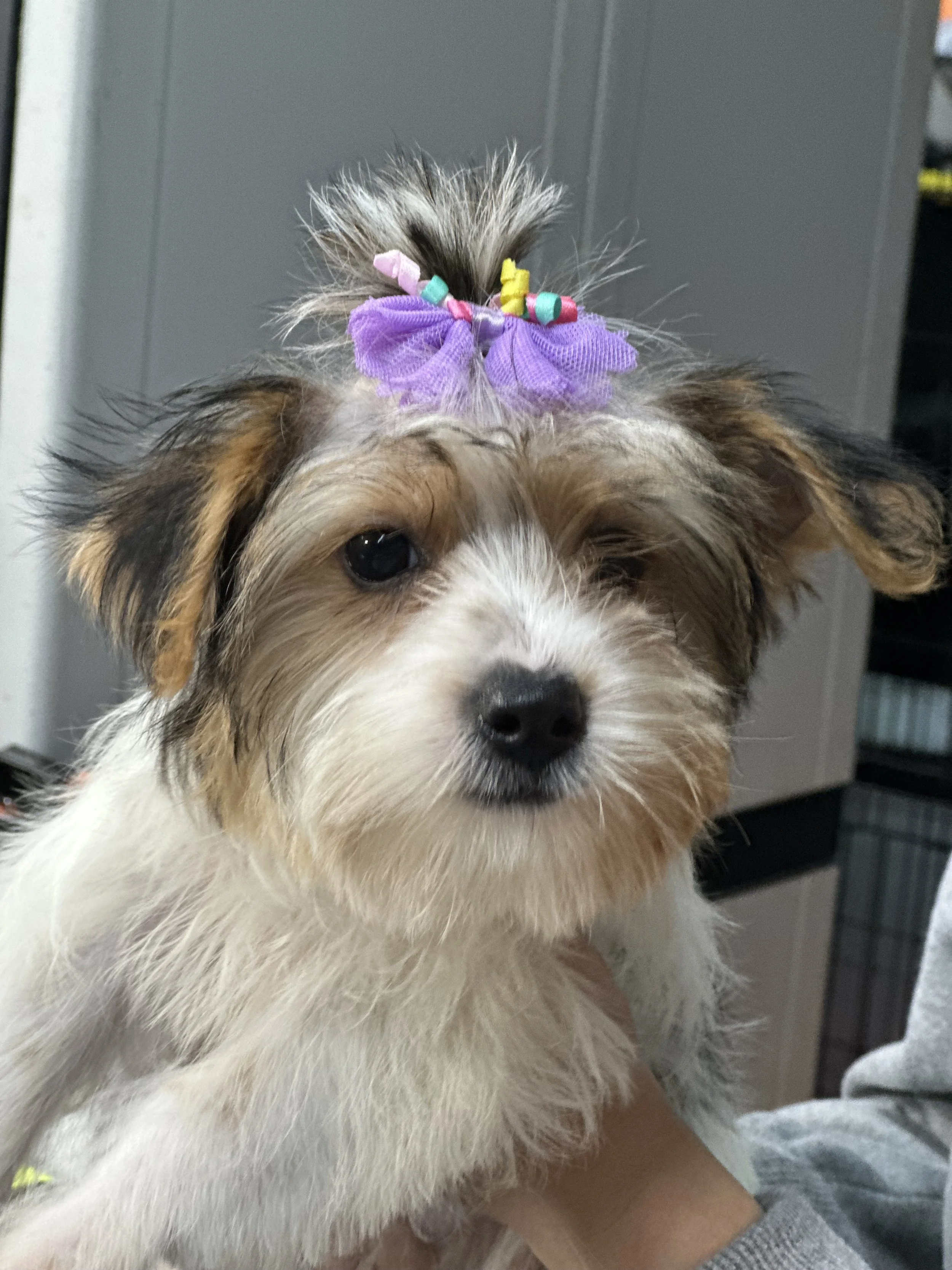 Penny is a 3-year-old Parti Yorkie who spent her life being used for breeding before she was rescued by our team. Now, she is enjoying life being pampered and loved. She is the sweetest girl who loves cuddles and to play with toys, and she will do great in any home!