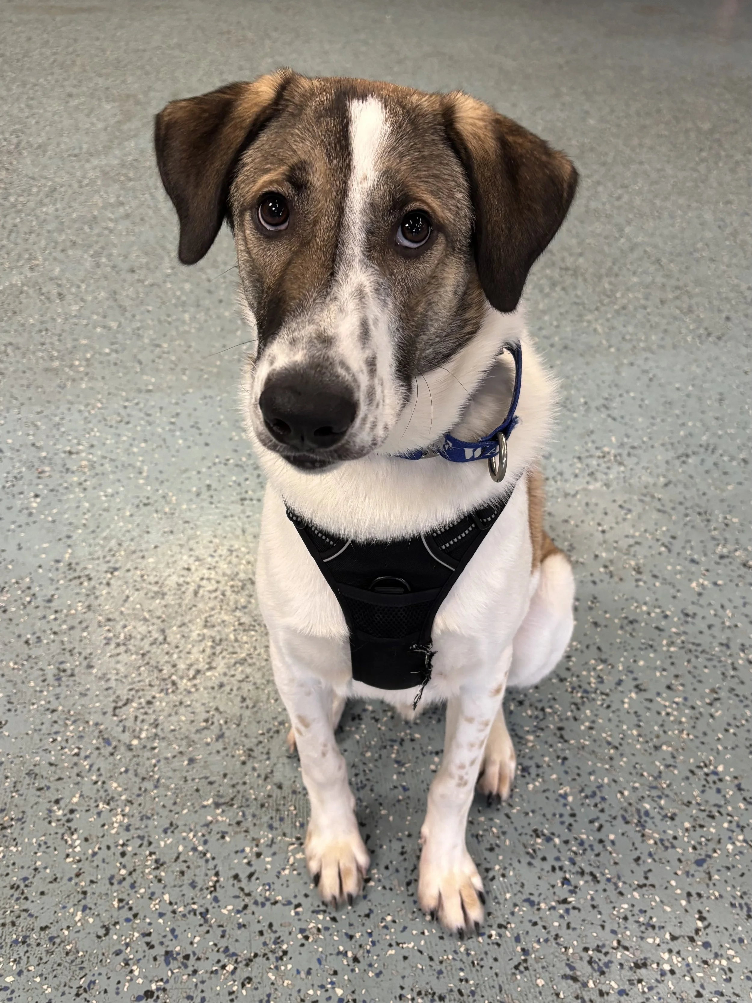 Dale is actively in training, working on his leash skills and commands, and is excelling well and is eligible to continuing training with his forever family through our training program.