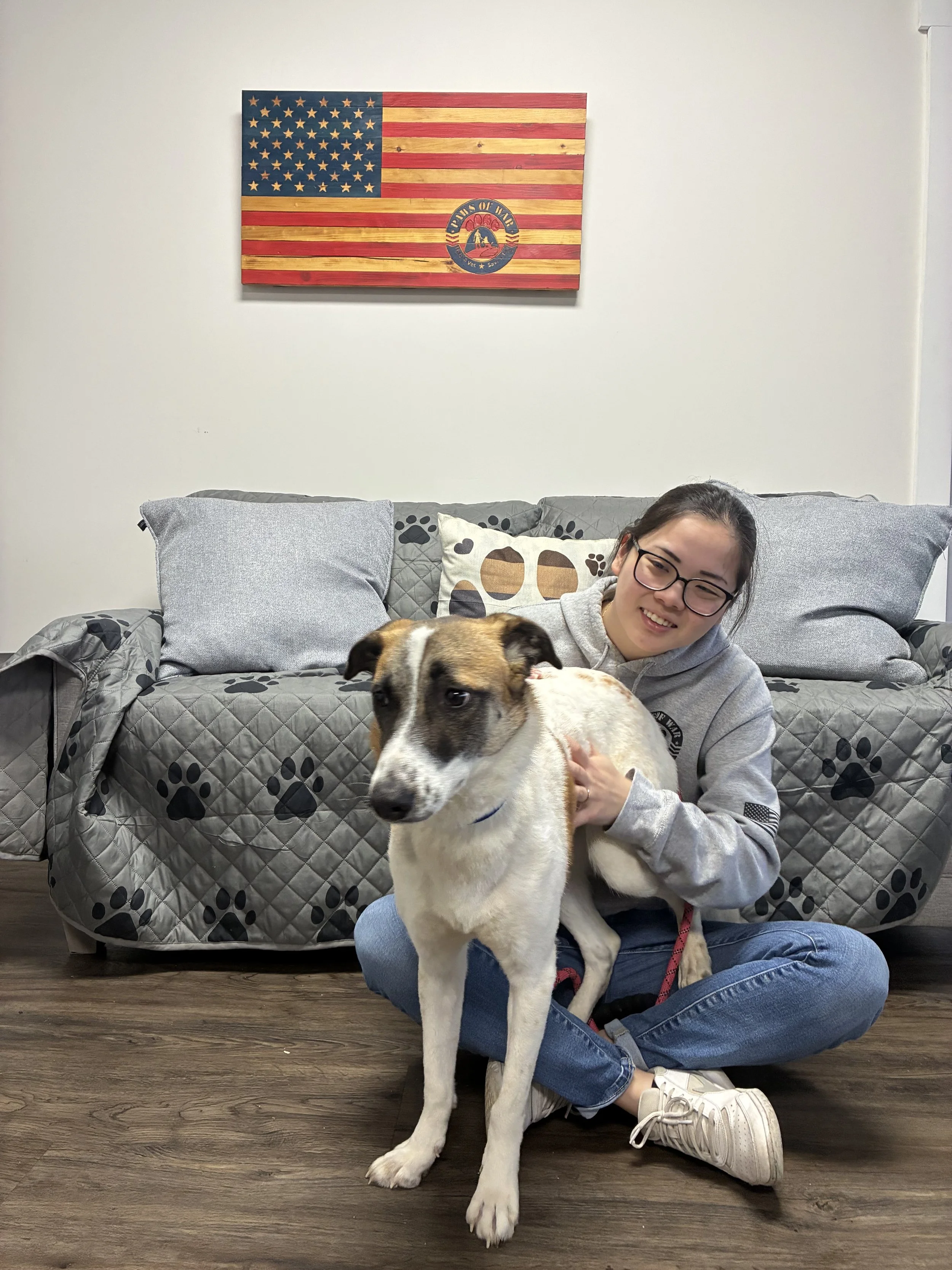 Singo is a 1.5-year-old mixed breed rescued through Paws of War’s War-Torn Pups and Cats program. She can be shy at first, but once she warms up, she’s a loving and playful girl with lots of energy.