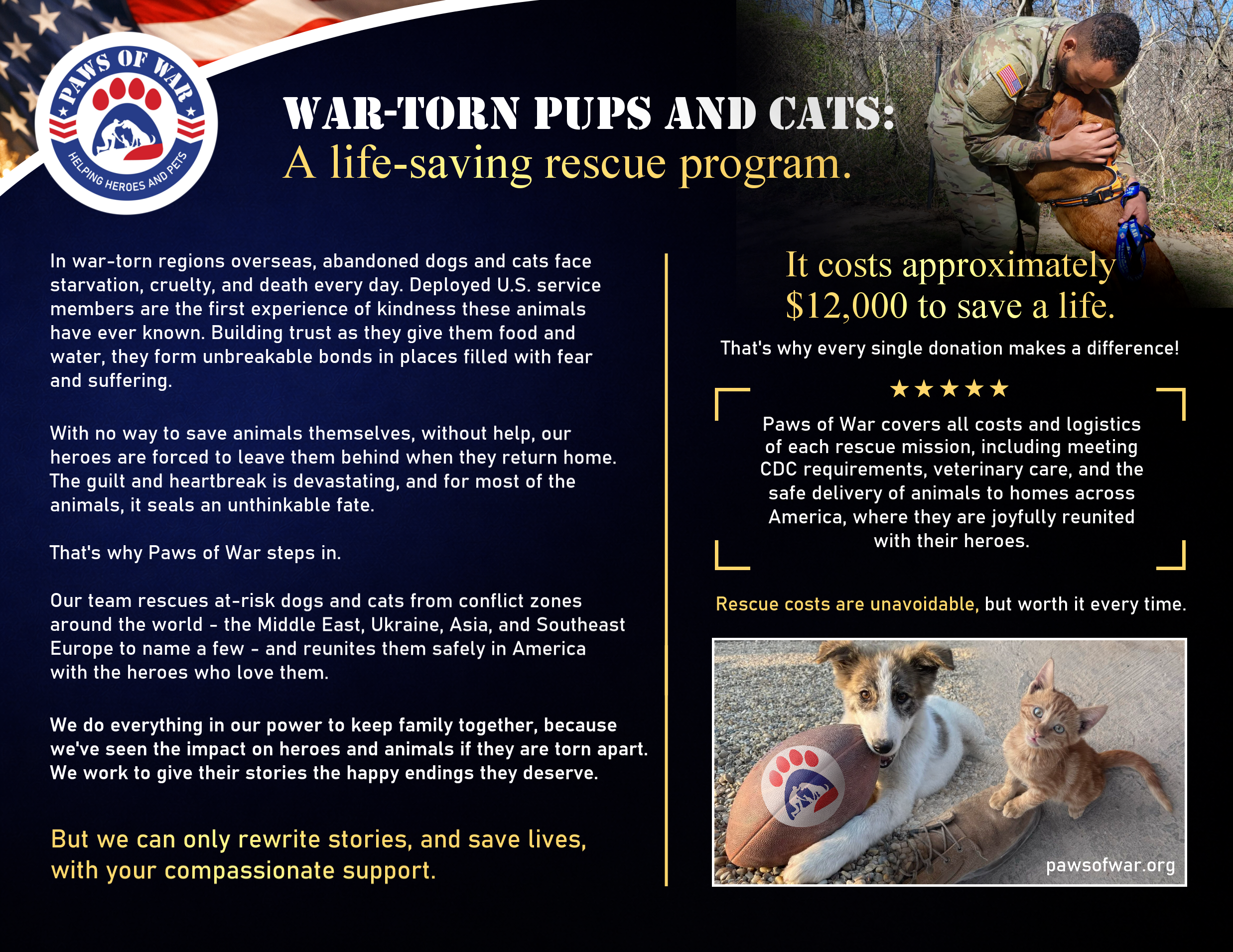 For sponsorship opportunities, please reach out to kelli@pawsofwar.org