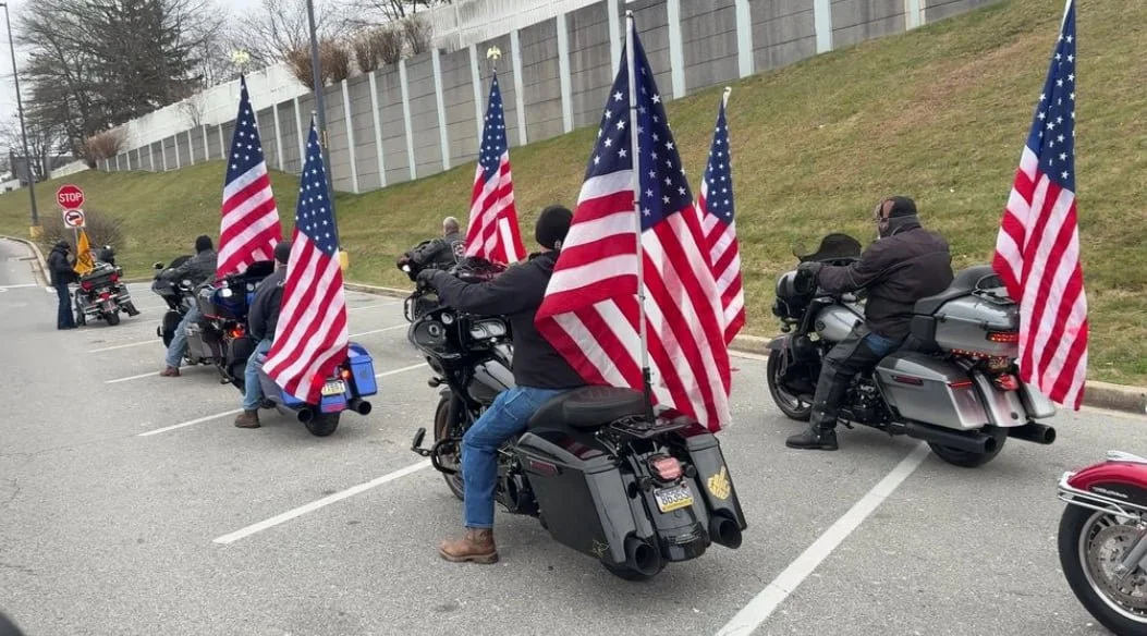 On the day of their reunion, Paws of War team members set off for Pennsylvania with Jasmine. They were escorted by the flying flags of the God Bless America Motorcycle Color Guard; adding honor and ceremony to an eagerly anticipated homecoming. Stormy's parents brought him outside onto to their driveway, right to the spot that Jasmine would arrive, and where his family and friends were already waiting.